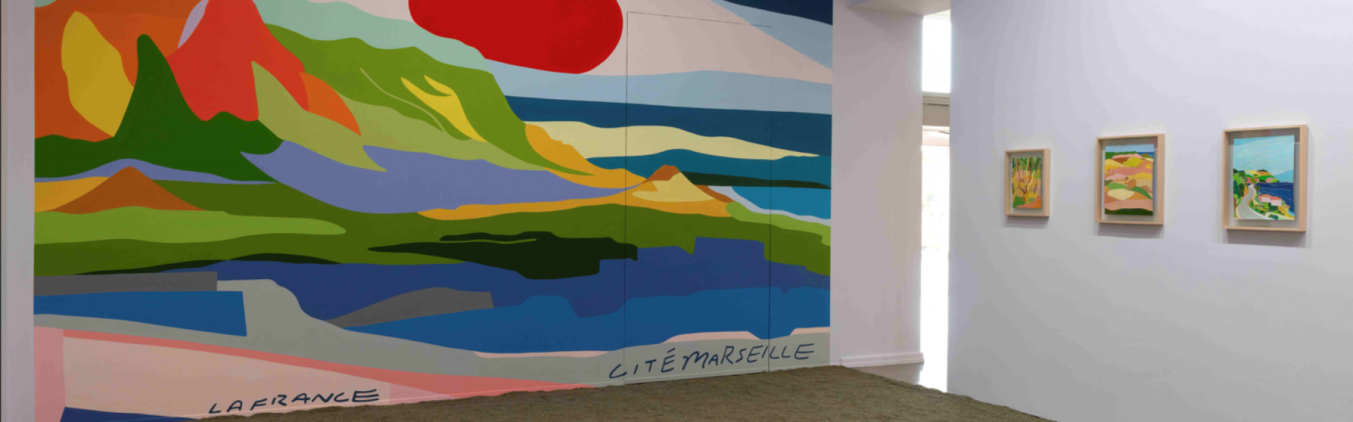 Aux paysages encadrés s’ajoutera une fresque murale représentant la ligne d’horizon de Marseille vue depuis la célèbre Cité Radieuse de Le Corbusier. Faisant de ce lieu le point de départ pour son œuvre, Perutz entend revisiter les pratiques académiques historiquement masculines – la peinture et l’architecture – à travers une intuition et un regard artistiques féminins contemporains.