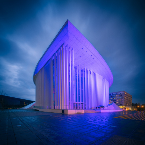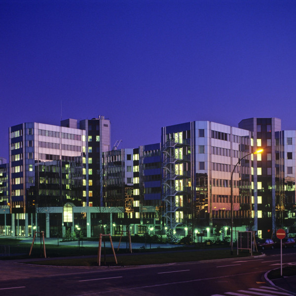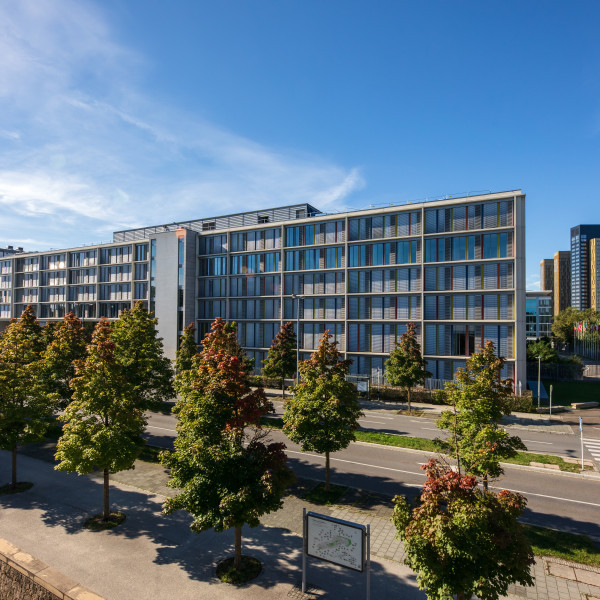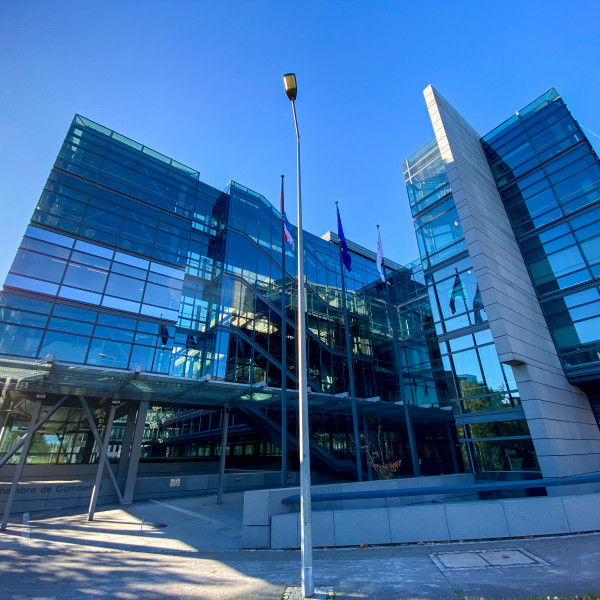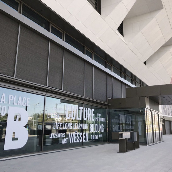 L'oeuvre original du bâtiment principal, avec sa structure en acier Corten, était très marquante à l'époque de sa construction (1973, Jean-Paul Conzemius, Francis Jamagne et Michel van der Elste).