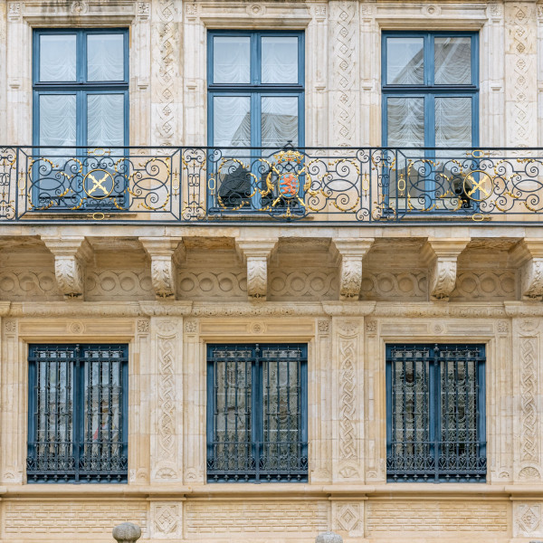 A l'origine, le Palais de justice fut construit comme hôtel particulier plutôt modeste pour le conseiller royal, échevin de la ville et homme d'affaires Nicolas Greisch en 1545.En 1564, le bâtiment fu...