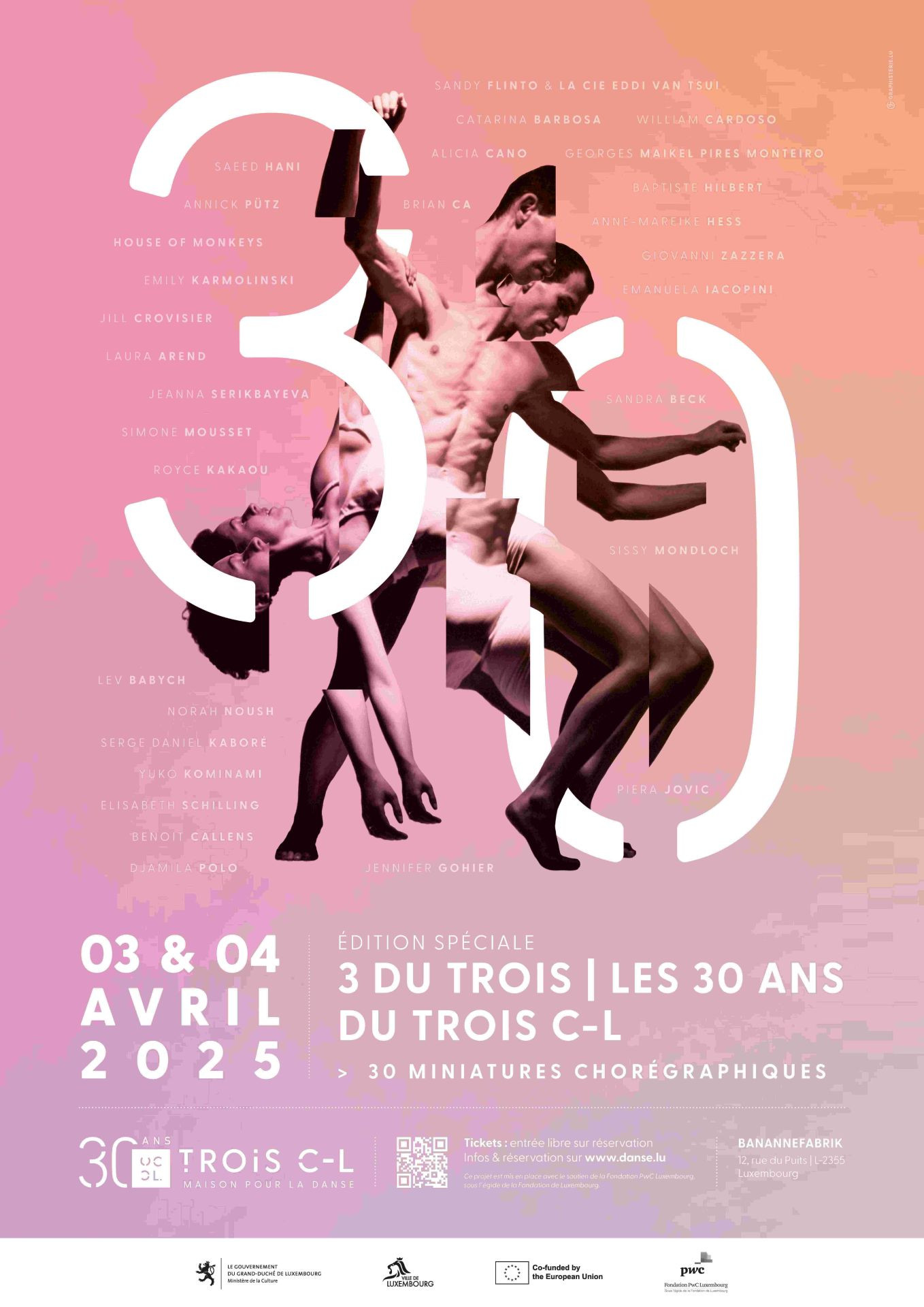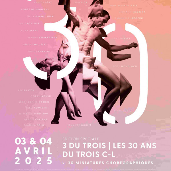 Pour célébrer ses 30 ans d’existence, le TROIS C-L a invité les chorégraphes et danseur.euse.s du Luxembourg à créer ou à re-créer 30 miniatures chorégraphiques spécialement pour l’occasion. Un moyen unique de célébrer la danse du Luxembourg dans tous ses états !