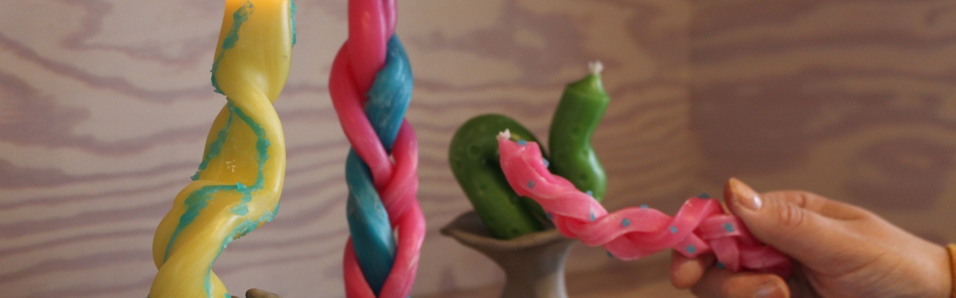 À l'aide de cire de bougie, d'argile et d'outils, nous concevons nos propres objets artistiques de table, qu'ils soient figuratifs ou abstraits, pratiques ou non.