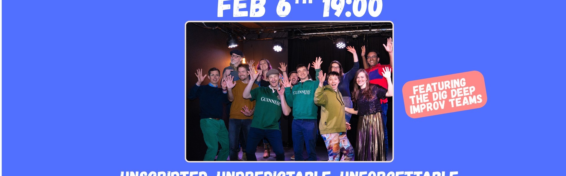 Join us for The Dig Deep Improv Show where our talented Dig Deep Teams of fearless improvisers will take to the stage with only one rule: say yes to the unexpected. Armed with your suggestions, they’ll dive headfirst into a fast-paced mix of scenes, games, and off-the-cuff characters, all created in the moment. No two shows are ever the same, and you play a starring role in making the magic happen.