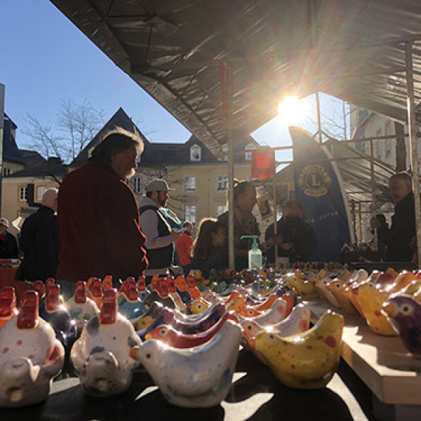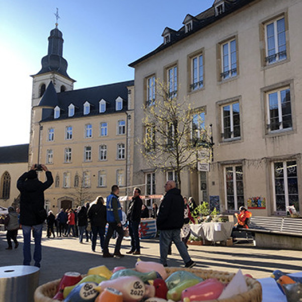 L'Éimaischen, l'une des plus emblématiques manifestations liées à la tradition luxembourgeoise, est un marché d'artisanat, qui existe au moins depuis 1827 et dont le thème principal est la poterie et la céramique. On y trouve les « Péckvillercher », petits sifflets en terre cuite en forme d'oiseaux, vendus uniquement à l'occasion de l'Éimaischen. Leur aspect varie d'année en année, ce qui en fait des objets de collection convoités, autour desquels les collectionneurs se pressent déjà dès l’aube. Leurs sons rythment, avec les animations folkloriques et les stands de gastronomie, l'atmosphère si spéciale de ce marché unique.
