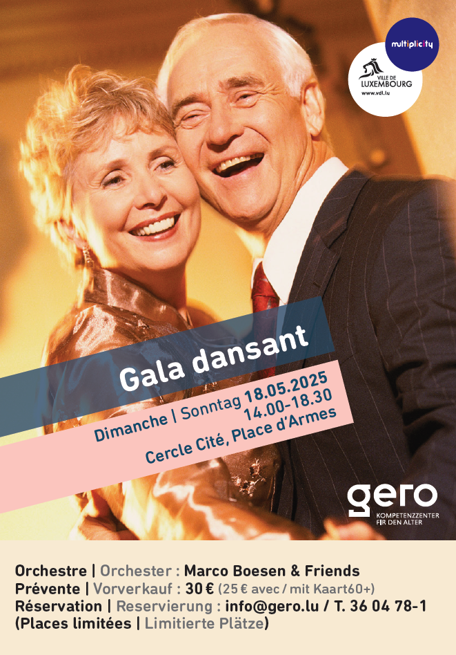 Après le grand succès de 2024, l'événement « Gala dansant », organisé conjointement par GERO et le Service Seniors de la Ville de Luxembourg, revient pour une nouvelle édition, accompagnée par Marco Boesen and friends.