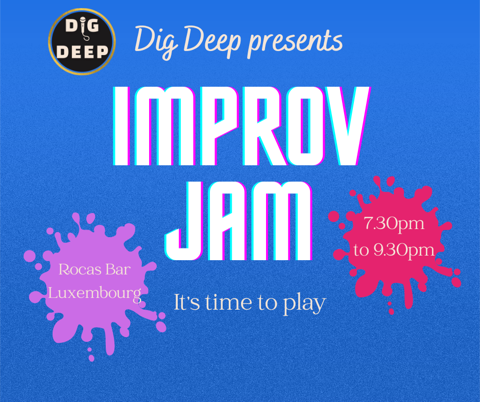 Join us for a Dig Deep Improv Jam. An open mic show where you can get up on stage and perform OR simply sit back, relax and be entertained by amazing unscripted theatre!