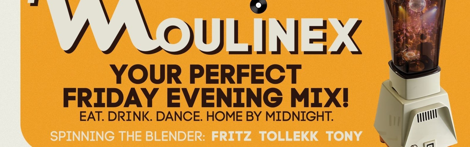 Introducing MOULINEX, a brand-new Friday party for those who love fun and respect the fact that weekends are short and recovery takes… longer than it used to.