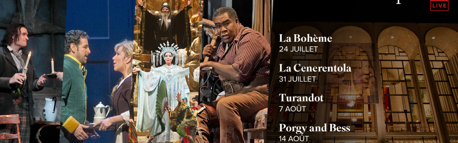 Au programme, nous avons sélectionné quatre opéras qui ont marqué les esprits : "La Bohème" de Puccini, "La Cenerentola" de Rossini, "Turandot" de Puccini et "Porgy and Bess" de The Gershwin.