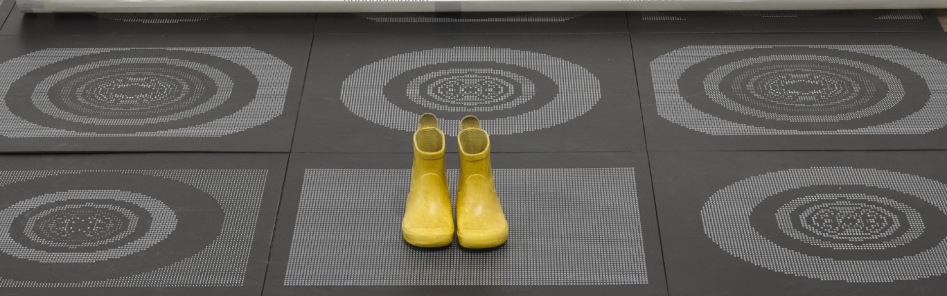 .Shoe-Field (1982-1989) réunit des matériaux créés par l’artiste Sonya Rapoport (1923, Brookline – 2015, Berkeley) au fil de ses recherches interactives sur les chaussures. « Mon travail est une réponse esthétique à des données scientifiques », expliquait l’artiste. Aujourd’hui exposée au Mudam, l’œuvre de Rapoport a été conçue pour être accompagnée d’une performance participative intitulée A Shoe-In, au cours de laquelle les personnes participantes sont invitées à réfléchir à leur relation aux chaussures en répondant à un questionnaire interactif.