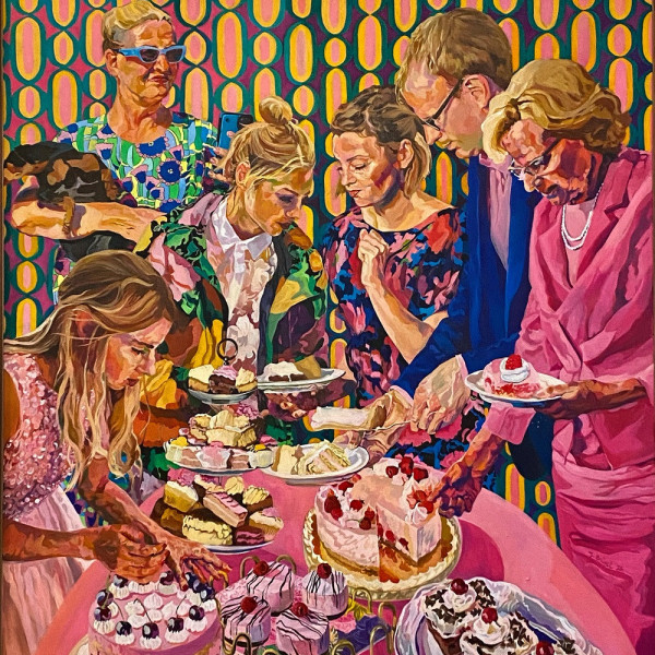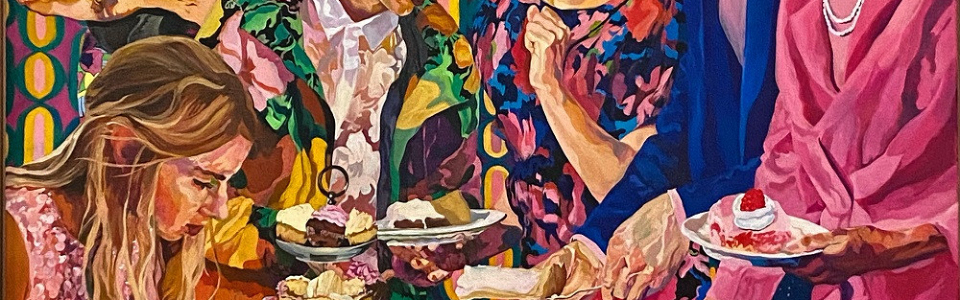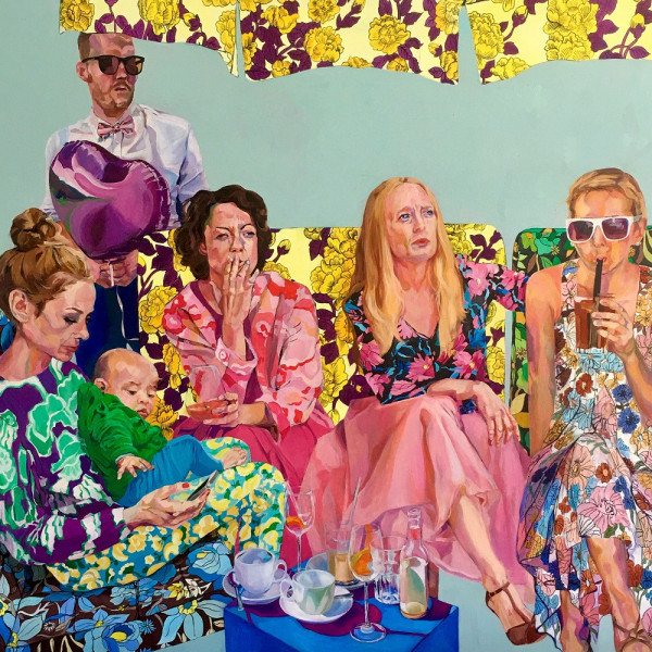 . Her work focuses on the human being - its complexity, its contradictions, its deep vulnerability. At first sight, the paintings appear cheerful: bright colors, bright patterns, an almost overwhelming joie de vivre. However, this superficial cheerfulness is misleading. A closer look reveals that there are scratches in the surface - fragility, disappointment and quiet despair emerge from behind the facade. The characters appear happy, but carry a noticeable burden.