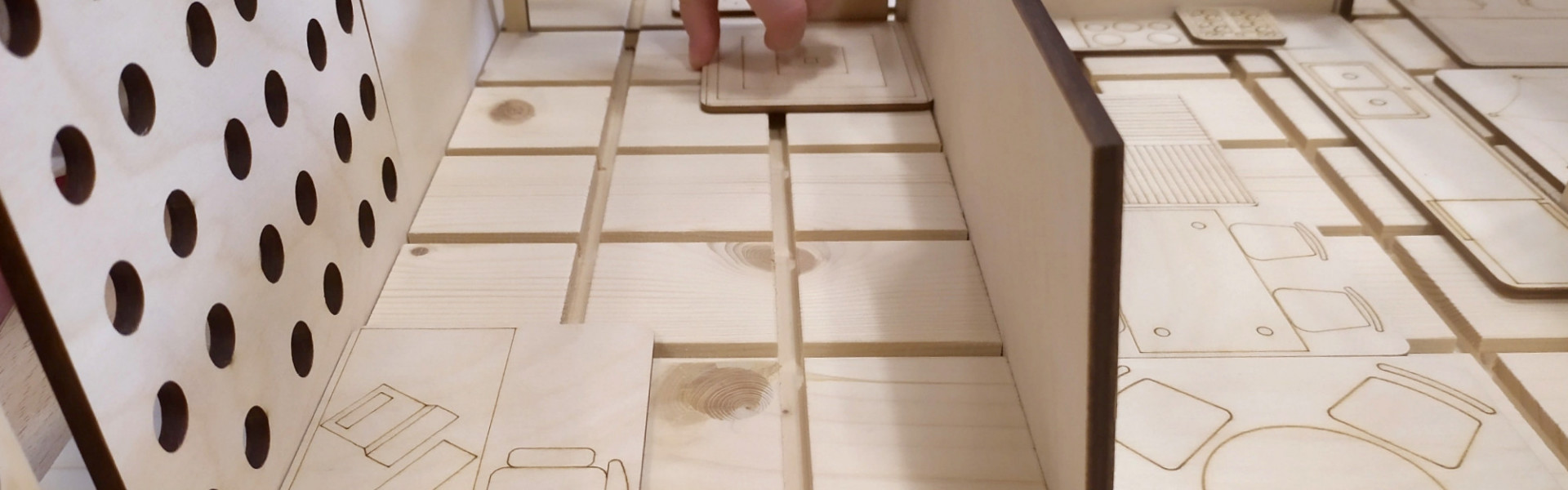 Les enfants seront ensuite invités à se glisser dans la peau d’un architecte pour imaginer un lieu qu’ils pourront agencer en fonction de ses usages, à l’aide de cloisons modulables et de mobilier à placer sur des plateaux en bois.
